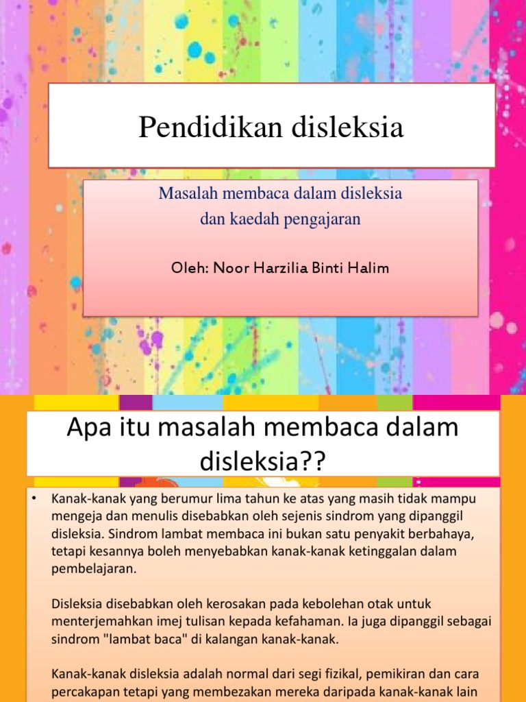 Slide Kanak Kanak Disleksia from image.slidesharecdn.com Kemudian dalam surah yang sama allah menyatakan bahawa dia mengajar manusia ilmu pengetahuan dengan perantaraan alat menulis. Walau bagaimanapun, pelajar lain juga boleh memberi manfaat. Kaedah ini memberi tumpuan kepada kesedaran fonemik, fonetik, pemahaman, bahasa, ketepatan, penguasaan bahasa dan ejaan. Muka hadapan abm (disleksia mengeja). Tips mengajar kanak kanak disleksia. Bagaimana cara mengatasi anak yang selalu ramai di kelas? Tak tahulah macamana dia belajar di sekolah. Latih anak² membaca sambil menghafal semasa cuti.penuhi masa terluang dengan pekara2 yang berfeadah.
